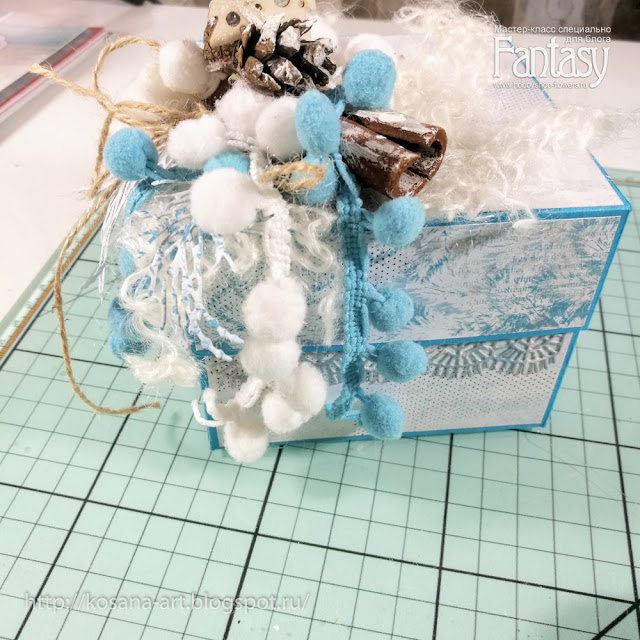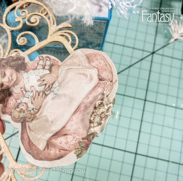 Начинаю размещать декор на коробочку. Сначала на один угол.