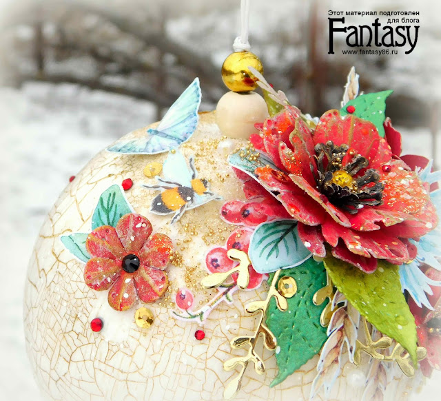 Сама основа шарика пенопластовая, с пластиком конечно работать удобнее, но у меня был только такой, из-за неровности основы работать с ним дольше. Немного расскажу, что я с ним делала.