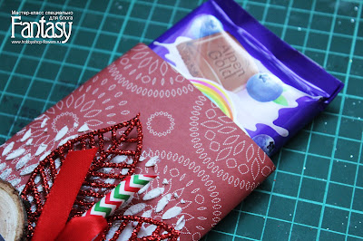 Берем нашу шоколадку и просто оборачиваем в скрап-бумагу, которую вы выбрали.