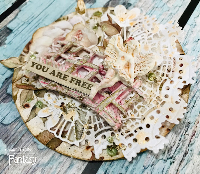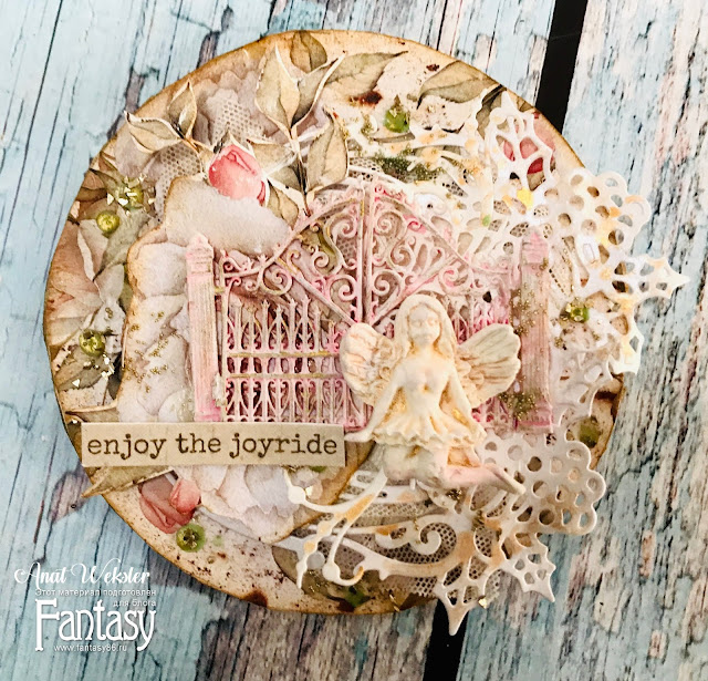 I felt like making something sweet and romantic so I gathered gorgeous lacey Fantasy dies, some Fairies, a beautiful paper and some more clay prints.