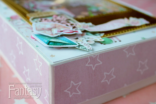 Использовала ножи Fantasy: Фоторамка 1, фоновый Звездочки и Круги. Так же набор чипборда "Банки"и набор бумаги "Розовые грезы" от СкрапМании.
