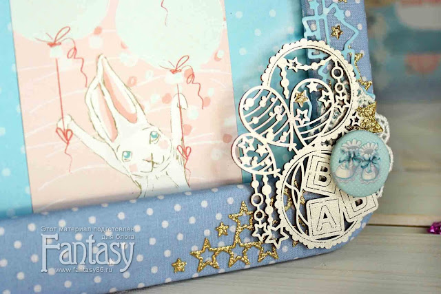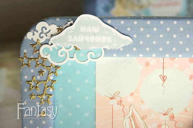 Использовала ножи Fantasy: фоновый Звездочки, а так же еще одни - Звездочки и Облачко 2. Так же высечки из коллекции "Небесное приключение" от СкрапМания.