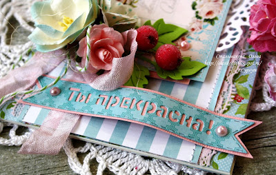 Конечно же, не обошлось без чипборда, его я решила оставить как есть, без покрытия, в естественном своём состоянии... Применила мою любимую шебби-лентуа сизаль, красивую салфетку, кружево, полужемчужинки и мой фаворит - нож-флажок от Fantasy (отличное дополнение к открытке!)
