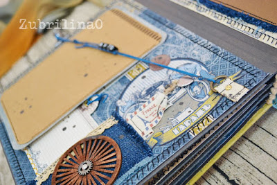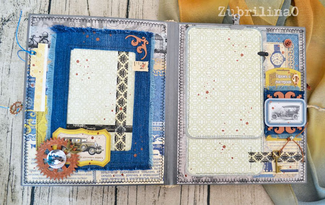 Пускаю в ход уже вторые старые джинсы - очень нравится использовать джинсовую ткань в мужских и семейных альбомах.