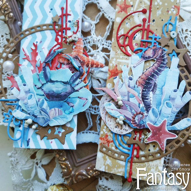 В работе была использована вырубка, сделанная ножами: "Блики света", "Рамка 1", "Абстракция 781", "Виват".