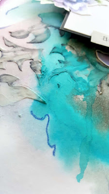 Из красок использовала спреи, акварель и дистресс-чернила.