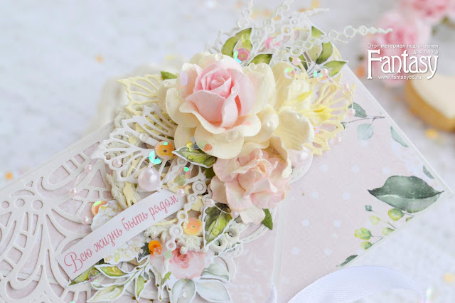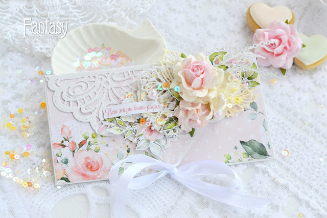 Одним из главных украшений стала кружевная вырубка ножом Паутинка. Посмотрите, как кружево идеально подходит по размеру к клапану конверта)) Придает невесомость и легкость всей работе. Определенно, на сегодняшний день этот нож - мой фаворит)) Вырубает отлично с первого раза.