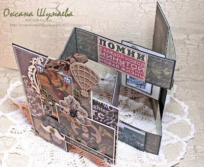 Конструкция у нее - гармошка. Если вы уже успели заметить, то я просто обожаю открытки сложных форм и конструкций. И эта далеко не исключение! Так скажем, вот ее - профиль))