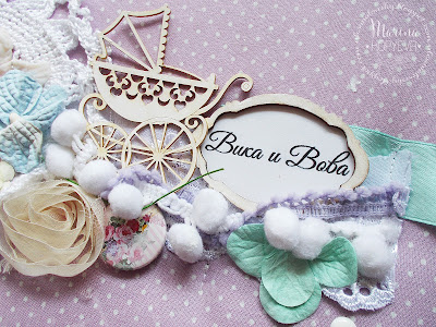 Сегодня хочу вам показать свой альбомчик, который я делала для двух замечательных малышей-двойняшек: Вики и Вовы. Мамочка попросила сделать альбомчик в мятно-сиреневых тонах. Для альбома мы выбрали бумагу от Fleur Design коллекция "Весенняя". Очень мне нравится данная коллекция. Идеально подходит как для детских альбомов, так и для свадебных. Альбомчик размером 25 на 25 см. Переплет по Виноградовой.