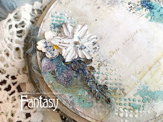 По этому случаю у меня получился небольшой мини-альбом. В работе я использовала несколько листов бумаги 15/15, текстурную пасту, трафареты, пудру для эмбоссинга, воски, немного металлических украшений, цветы и, конечно, ажурную вырубку любимыми ножами.