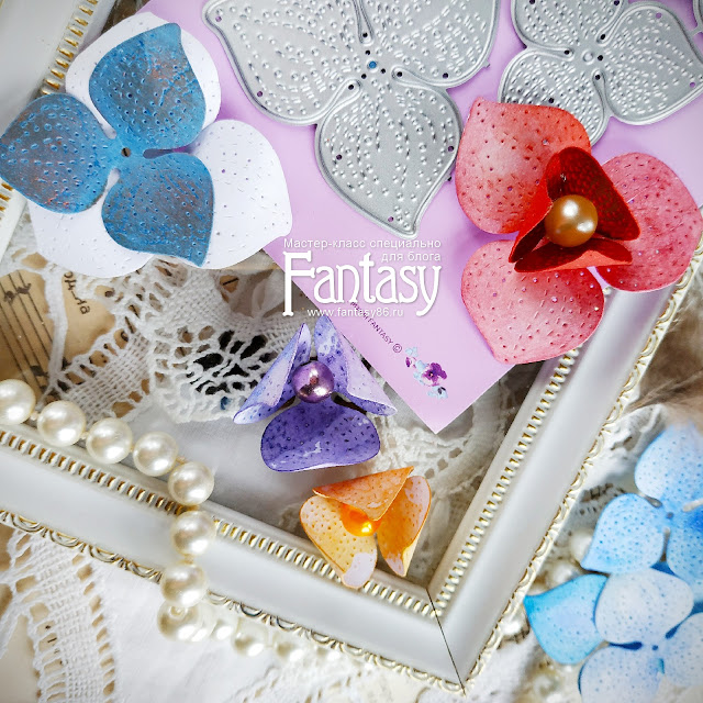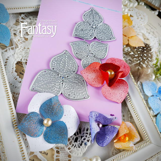Алена рассказала о линейки ножей Fantasy для создания цветов, о цветочном чипборде Fantasy, о возможностях применения ножей "Роза"и "Распущенная роза", а так же показала как быстро и просто создать акварельные фантазийные цветы и коробочки физалиса при помощи набора ножей «Гортензия пятнистая фантазийная».