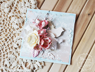 В работе использовала полюбившийся мне набор бумаги "Neverending Summer", розы, полужемчуженки, пёрышко и вырубленные листочки.