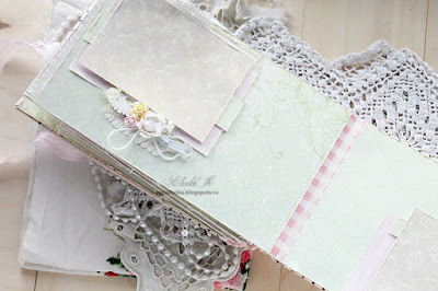 Альбом в тканевом переплете. Изначально я планировала плоский декор, поэтому думала сделать альбом на пружине. Но в процессе захотелось использовать объемные цветочки.