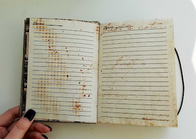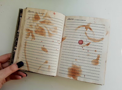 Всего в блокноте 150 страниц. Все состарены с помощью кофе и проштампованы.