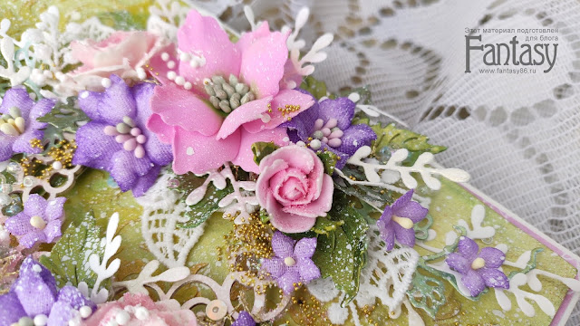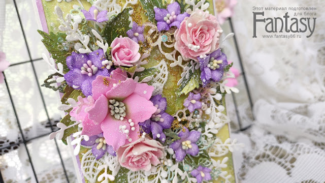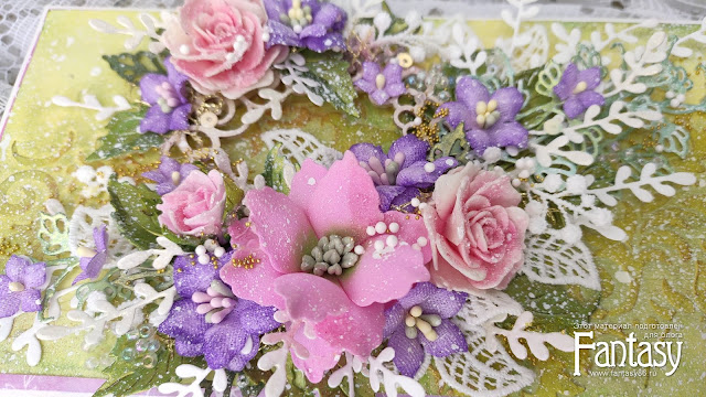 Так же в этой работе я использовала цветы из фоамирана.