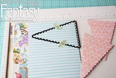 2. Вырезаем наши флажки. Я делала это при помощи ножей "Флажки с фестонами". Но такую форму вы можете вырезать просто ножом или ножницами. Если хочется волнистого края, можно сделать его фигурными ножницами)