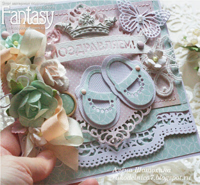 Замечательный нож для вырубки "Флажок "Поздравляем!"от Fantasy, милашки-туфельки и ажурный край создают ощущение воздушности, как раз для детской темы).