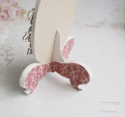 Вырезаем из скрап-бумаги все детальки конструкции и приклеиваем их. Для устойчивости яйца на ножке я с задней стороны приклеила из пивного картона консоль.