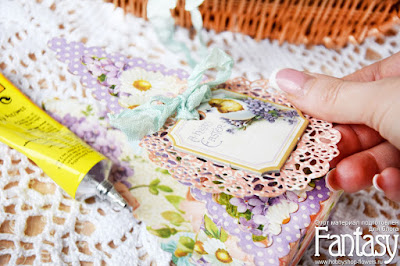 4. Приклеиваем салфетку к коробочке.