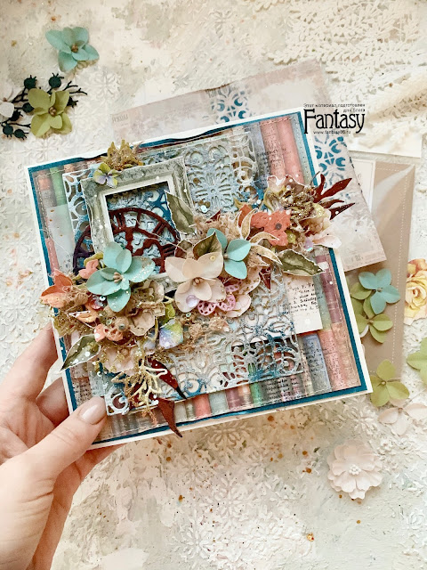 Так же в прямом эфире я познакомила вас с клеем от Fantasy- это очень классный продукт, но у него есть свои особенности применения, о которых я подробно рассказала. Всю открытку я полностью собрала с помощью этого клея - бумага, картон, вырубка, топпинг, цветы и даже металлические элементы приклеены на этот клей. Не верите? Тогда скорее смотрите эфир, он сохранен в записи: 1 часть эфира, 2 часть, 3 часть.