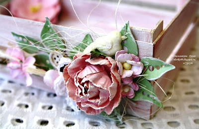 Сам ящичек сделан из пивного картона, покрыла его акриловой краской и грунтом, а украсила цветами, сизалью, вырубкой, сделанной при помощи ножа от Fantasy "После дождя - веточка".
