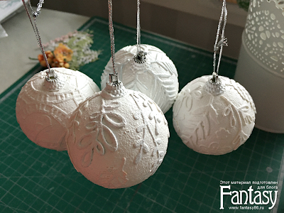 В этот раз я задекорировала пенопластовые шарики из FixPrice с помощью красок и вырубки, сделанной ножами Fantasy.
