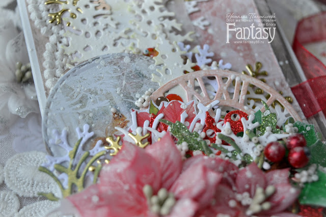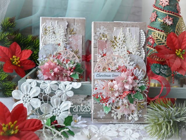 В работе использовала ножи для вырубки Fantasy: "Плюмерия", "Уютная зима", "Мини-снежинки Скандинавия", "Веточка остролист", "Веточка сосновая 1004", "Часы 851", "Мимоза 2", "Зимний лист 2"
