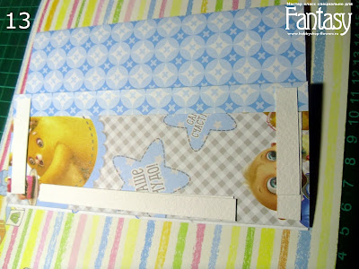 Идем дальше: на отворот клеим ленты и закрываем их подложкой для фото размером 11 на 16 см. Клеим все на клей Ф.Д., можно использовать также клей "Титан", он очень схож по качеству с Ф.Д.