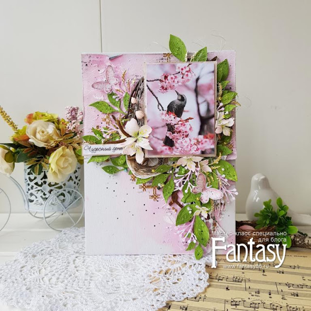 Какая же у нас на третьем этапе палитра вдохновительная! Сразу скажу, что я очень люблю работать с палитрами! Хоть эти цвета были для меня сложноваты, но я по максимуму попыталась повторить нашу палитру и сотворила с помощью материалов "Fantasy"нежное цветущее панно!