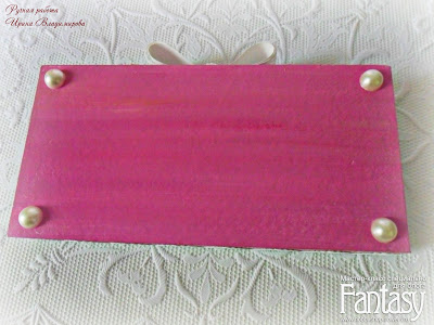 На дно шкатулки можно сделать имитацию ножек в виде половинок жемчужин пластиковых, диаметр 6 мм,