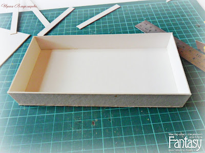 Теперь берем заготовки для крышки коробочки. Отступаем от края нашей крышки по 2 мм. с каждой стороны и проделываем все тоже самое что и с дном коробочки.