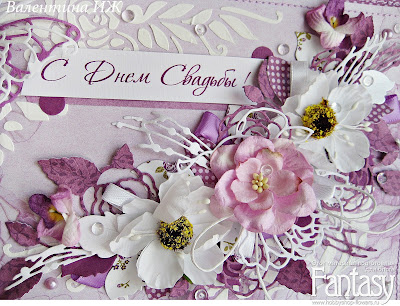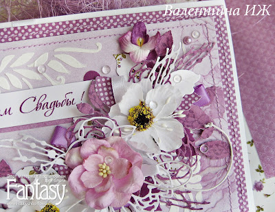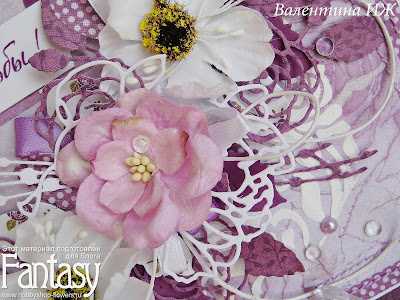Белый цвет, бумага в мелкий горошек немного оживляют открытку, придают свежесть и некую игривость. Вот такая получилась открытка цвета фиолет))...Надеюсь вам понравилось.