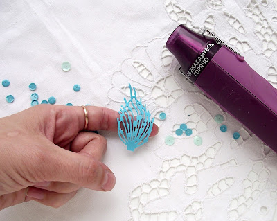 Теперь берем любой 3D-гель, приклеиваем бусины, бисер и микробисер - это будет середина цветка.