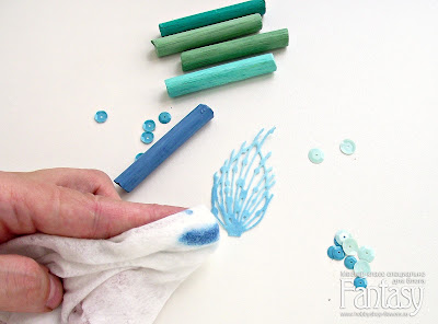 Так как лепестки у цветов имеют неравномерную окраску и окрашены у центра в более темные тона, мы будем наши лепестки подкрашивать. Наматываем на палец влажную салфетку, проводим по пастели, чтобы салфетка окрасилась. И начинаем этой салфеткой проводить от края (того что будет потом в центре цветка) листа к середине, делая плавный переход. И так все листики.