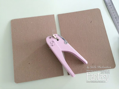 Дальше займемся подготовкой внутренностей папки. Нам нужна плотная бумага - у меня папка для девочки и я остановила свой выбор на коллекции BABY MINE. Если у вас бумага плотностью меньше 200, то советую ее уплотнить, например, акварелькой или тонким пивным картоном (1 мм). Вырезаем 2 заготовки размером: 15,1х 21,1 см (если у вас заготовка другого размера, то внутренний лист по периметру должен быть меньше на 2 - 3 мм), скругляем по два угла с каждой стороны, прикладываем к нашей заготовочке.