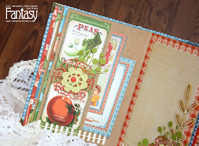 У меня эта книжечка будет служить накопителем рецептов всяческих заготовок, которые я уже не делала лет 10 (а ведь я люблю готовить)). Книжечка так же для заметок, касающихся садово - огородных дел, которые будут у меня в следующем году (я надеюсь). Я совсем не ослик-огородник, если честно)). Но место, где возводится наш дом, предполагает все же, что помимо газона там еще будет сад и всякие приятные мелочи вроде петрушки, укропчика, базилика и всяких салатов))). Для будущего сада у меня в процессе садовый дневник. Думаю, что покажу вам его в ближайшее время. А пока что вот такая книжка - малышка).Для создания своей мини - книги я использовала бумагу Graphic 45 Home sweet home collection. Нужно отдать должное этому набору, его можно использовать для различных проектов. Из него получатся замечательные кулинарные книги, альбомы для дачных или деревенских фотографий, отлично подойдет такая бумага и для домашних планировщиков. И открытки с конвертами из этой коллекции бумаги получаются яркие, жизнерадостные, солнечные! Подборку работ из этой коллекции вы сможете посмотреть сегодня вечером у меня в блоге, в аналогичном посте.