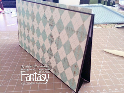Отрезаем 2 листа скрап-бумаги размером 11,6 см х 20,6 см и один кусочек 7 см х 20,6 см (бигуем пополам).
