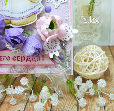 И, конечно, универсальная надпись флажок "От всего сердца" отлично вписывается в любой проект. А вырубка, сделанная ножом "Жемчужные нити..." добавляют пикантности.