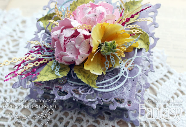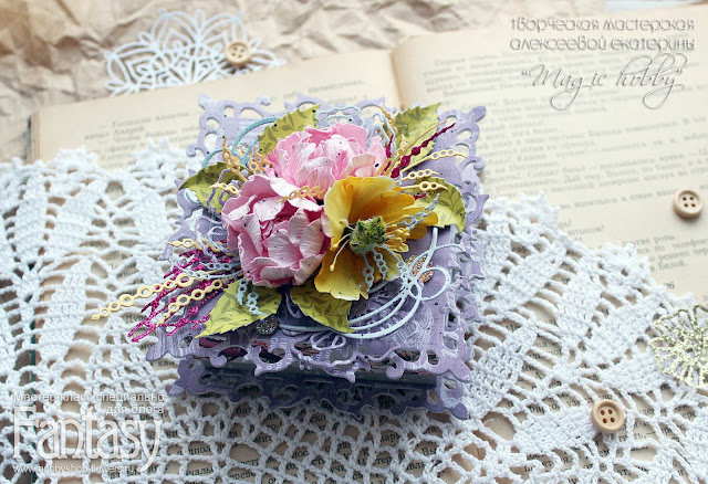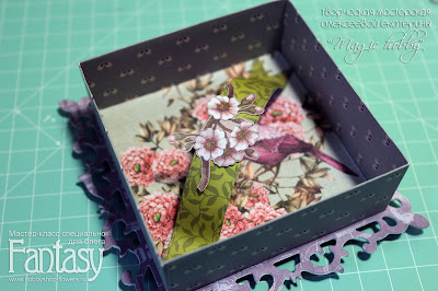 Когда наши полуфабрикаты готовы, нам необходимо их собрать: приклеиваем нижнюю часть коробочки к одной из резных заготовок,...