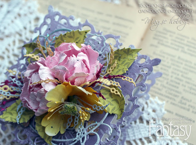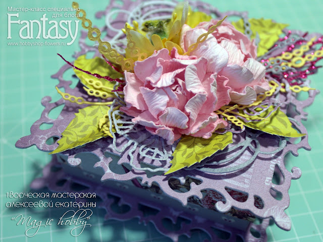 Так как я планирую основным украшением сделать вырубку, основательно готовлюсь к этому шагу - использую ножи Fantasy "Роза 1", "Мальва-скрап", "Россинки", "Жемчужные нити и тычинки для цветов".