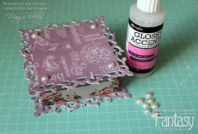 Так как дно у коробочки плоское, я решила сделать небольшие ножки. Для этого с нижней стороны просто приклеила крупные полужемчужинки.