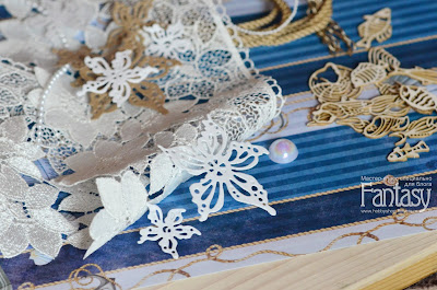 А дальше я начала декорировать вырубку ножами Fantasy "Цветок райский" при помощи пудры для эмбоссинга. Мне понадобились два оттенка, которые я определила исходя из цветовой гаммы будущей интерьерной вещицы: