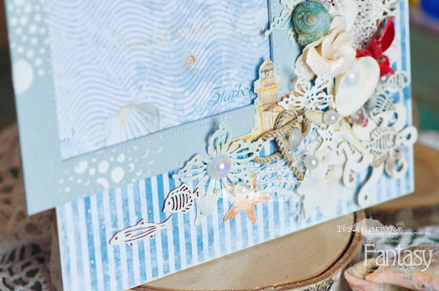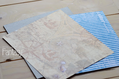 - бумага на морскую тематику или любая другая на ваш вкус). У меня Bee shabby, коллекция Blue sea;