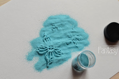 - пудра для эмбоссинга, подушечка и фен.