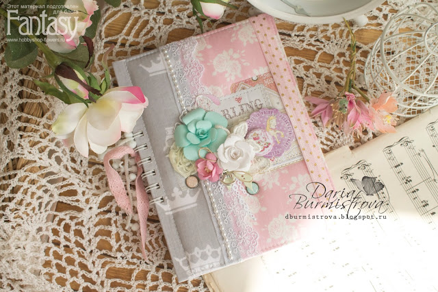 А также для создания этого блокнота я использовала бумагу Bee Shabby "Sweet Girl", чипборд и фишки из этой же коллекции.