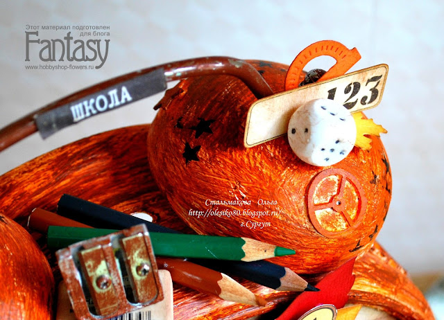 Для создания этой работы я использовала: будильник), канцелярские предметы, Ножи от Fantasy, а именно я взяла маленький флажок и элементы из школьного набора, картинки из старого набора ScrapBerry's "Скоро в школу!", грунт, акриловые краски, кисть, ручной принтер...