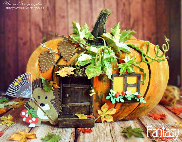 Заготовку-тыковку сделала с нуля из пивного картона, расписала акриловыми красками и задекорировала различной вырубкой.