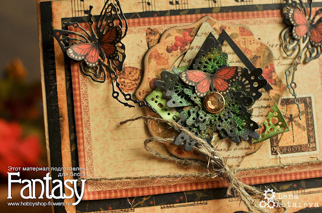 А из под слоев бумаги проглядываются листики, сделанные ножами для вырубки Fantasy листья "Воздушные".