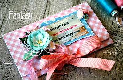 Для создания конверта я использовала: бумагу от ScrapBerry's из коллекции "Элегантно и Просто", цветы (дикая роза мне показалась здесь очень гармоничной), шебби-ленту, немного сизали, ножики от Fantasy лист "Роза 1" и цветок "Мальва-скрап".