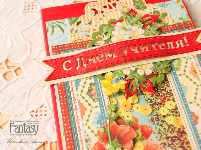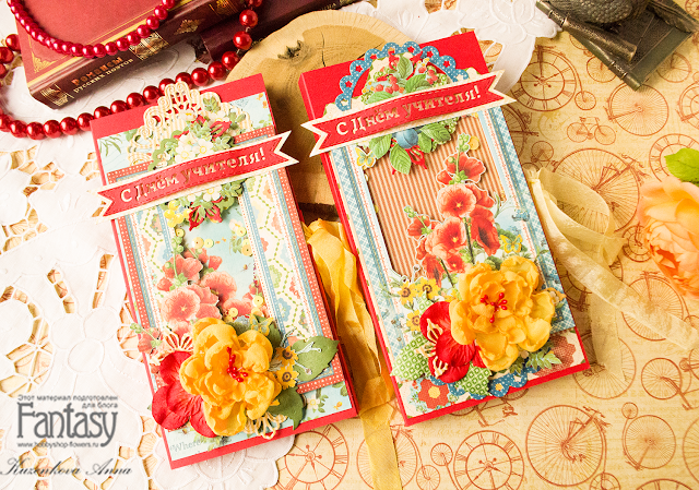 Сделаны шоколадницы из бумаги "Home Sweet Home"от Graphic 45 - совсем не школьной, но очень яркой и радостной. А как здорово иметь такой вот тематический нож-флажок, очень удобно "подписать"им открытку!